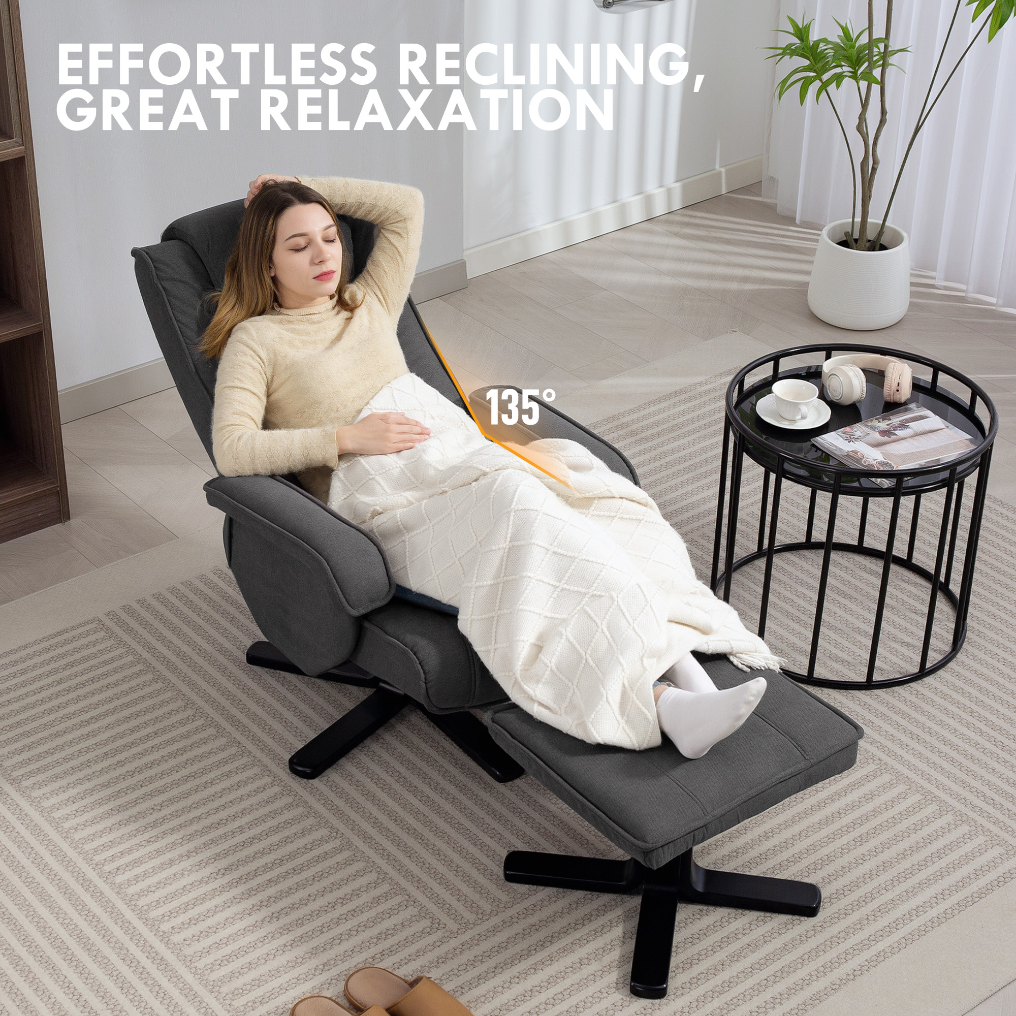 Discover relaxation anew with the HOMCOM Recliner Chair and Footstool. Enjoy limitless comfort as it reclines up to 135° and rocks gently, suitable as your new fireside chair or comfy living room armchair. The 13 cm thick seat padding supports every inch from back to arms, while the 360° swivel feature adds a fun twist to your lounging experience.