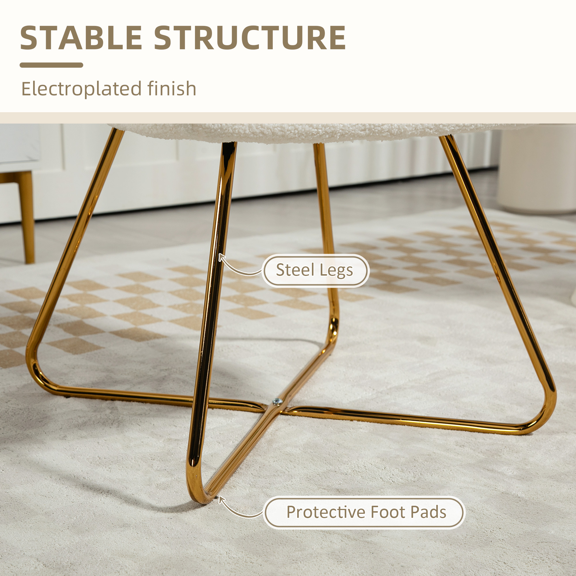 Double the plush comfort with this HOMCOM dining chair set. Sponge seats for comfort, wrapped in sherpa fleece upholstery for a soft finish. Each works perfectly as a reading chair, vanity chair or lounge chair - they are versatile! Complete with a metal base for strong support.