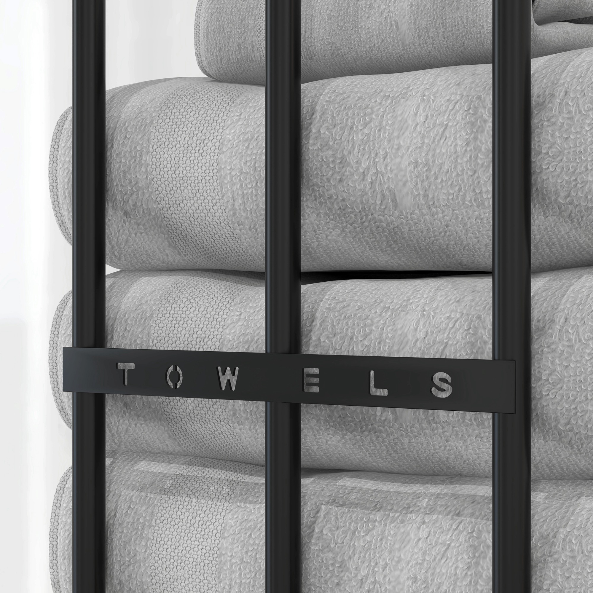 Smart pieces, such as this HOMCOM wall mounted towel rail, means smart home organisation. Saving space and holding up to six large towels, this is a piece perfect for family use. Made from metal with a protective paint coating, this black towel holder is tough. Attach to the wall and save space, wherever you wish to choose. A minimal design for total versatility, complete with a 'towels' cut out on the front.