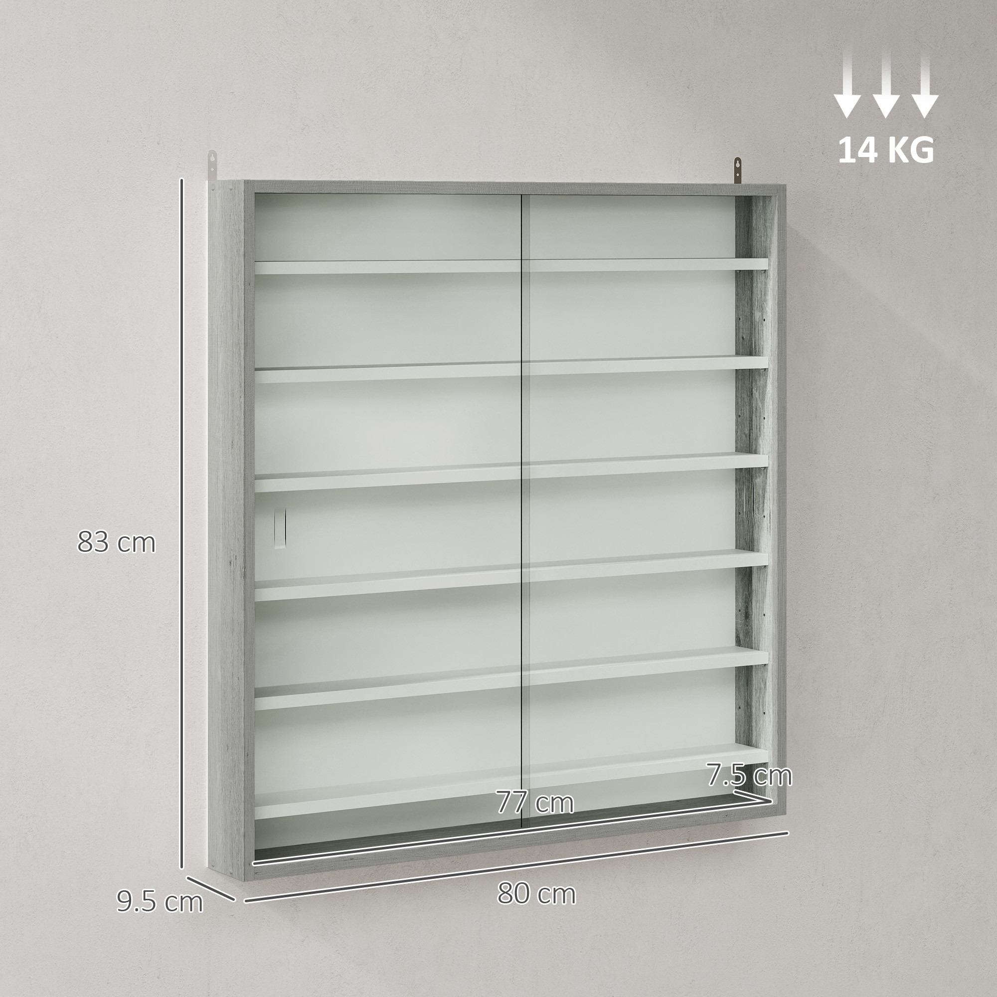 Display and organise favourite decorations with this HOMCOM wall display cabinet. It has six adjustable shelves, with 11 different positions, offering lots of space for smaller and larger items. Made from particle board, the structure is sturdy, and fitted with two sliding glass doors, keeping everything protected and allowing easy access. Easy to fix onto walls, this classic home furnishing will keep all your favourite pieces beautifully displayed.