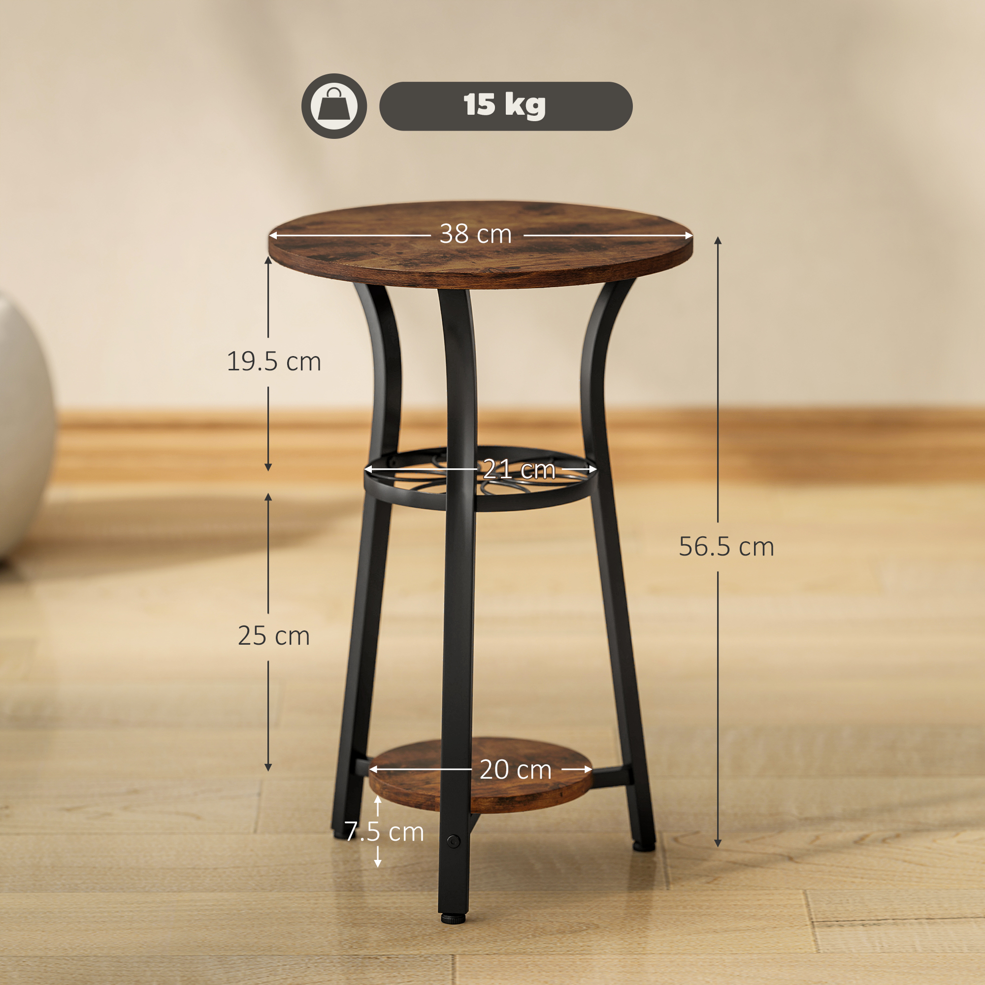 Discover the allure of industrial elegance with the small side table from HOMCOM. Blending a rustic wood-effect finish with a sleek black metal frame, this chic living room end table brings timeless style to any room. The three-tier design not only graces your living space with a hint of grace but also offers lots of storage, great for snug corners or compact rooms. Enjoy style and functionality, effortlessly.