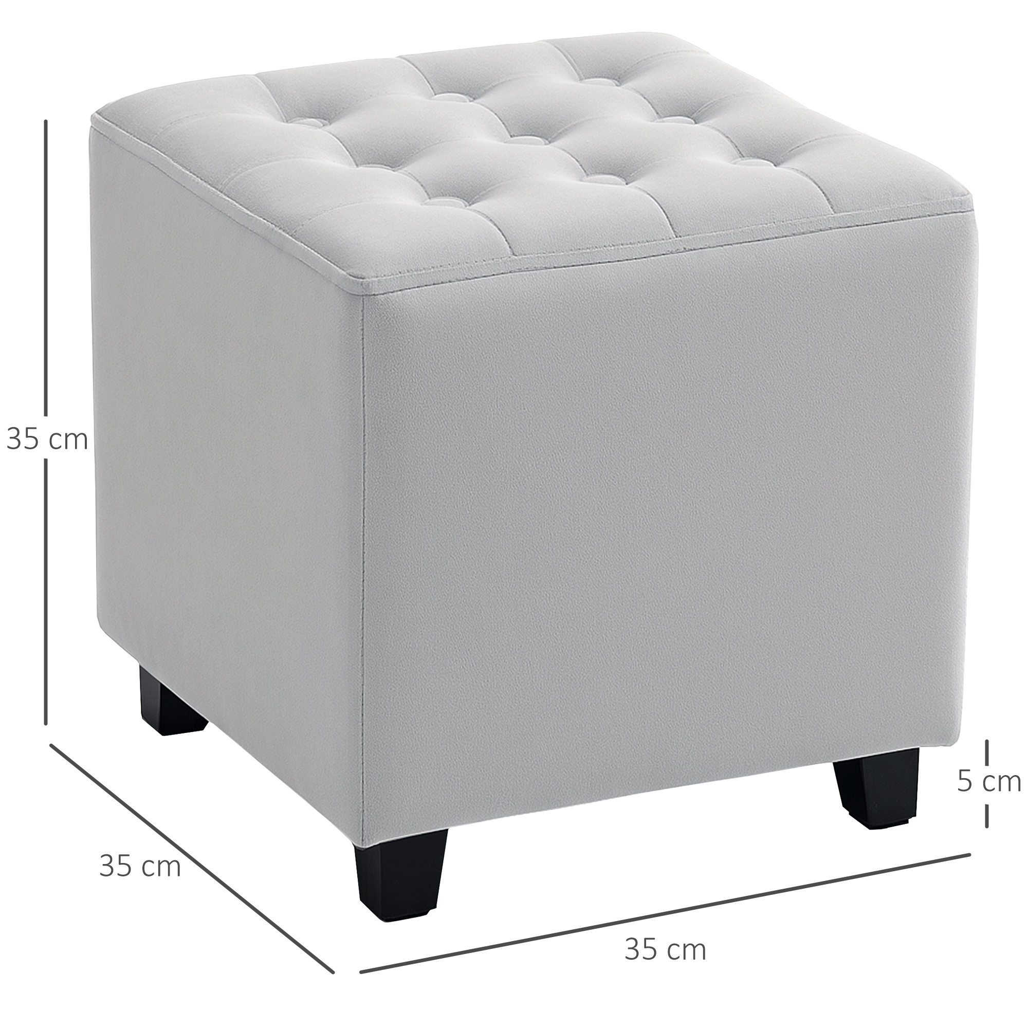 This HOMCOM square footstool does more than just look good. Sized at 35 x 35cm and weighing 2.85kg, this is a compact and lightweight piece - use pouffe stool for extra seating or a footrest. Finished in velvet-feel fabric, this is a soft and luxurious piece.