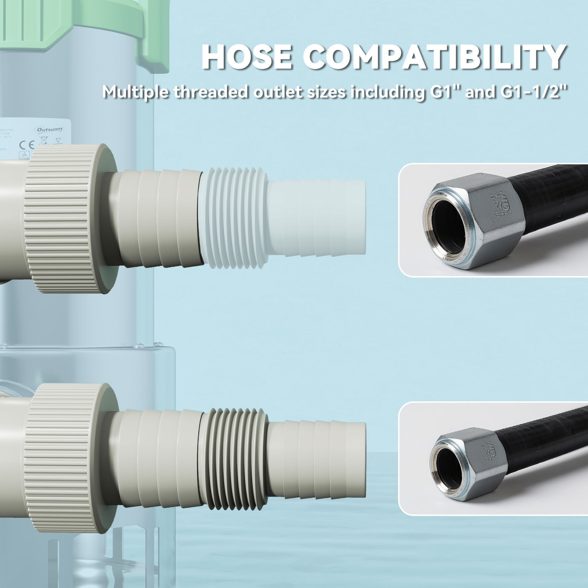 Tackle tough water removal tasks with the Outsunny Electric Water Pump. Its robust 1100W motor powers through up to 18500 L/H, lifting water up to 11 metres high and handling debris up to 35 mm. Built to last with a corrosion-resistant stainless steel housing, this water butt pump automates with water levels, ensuring efficient operation without constant oversight. Suitable for flooded areas, pools and ponds. Outsunny dirty water pump - built for performance, trusted by users.