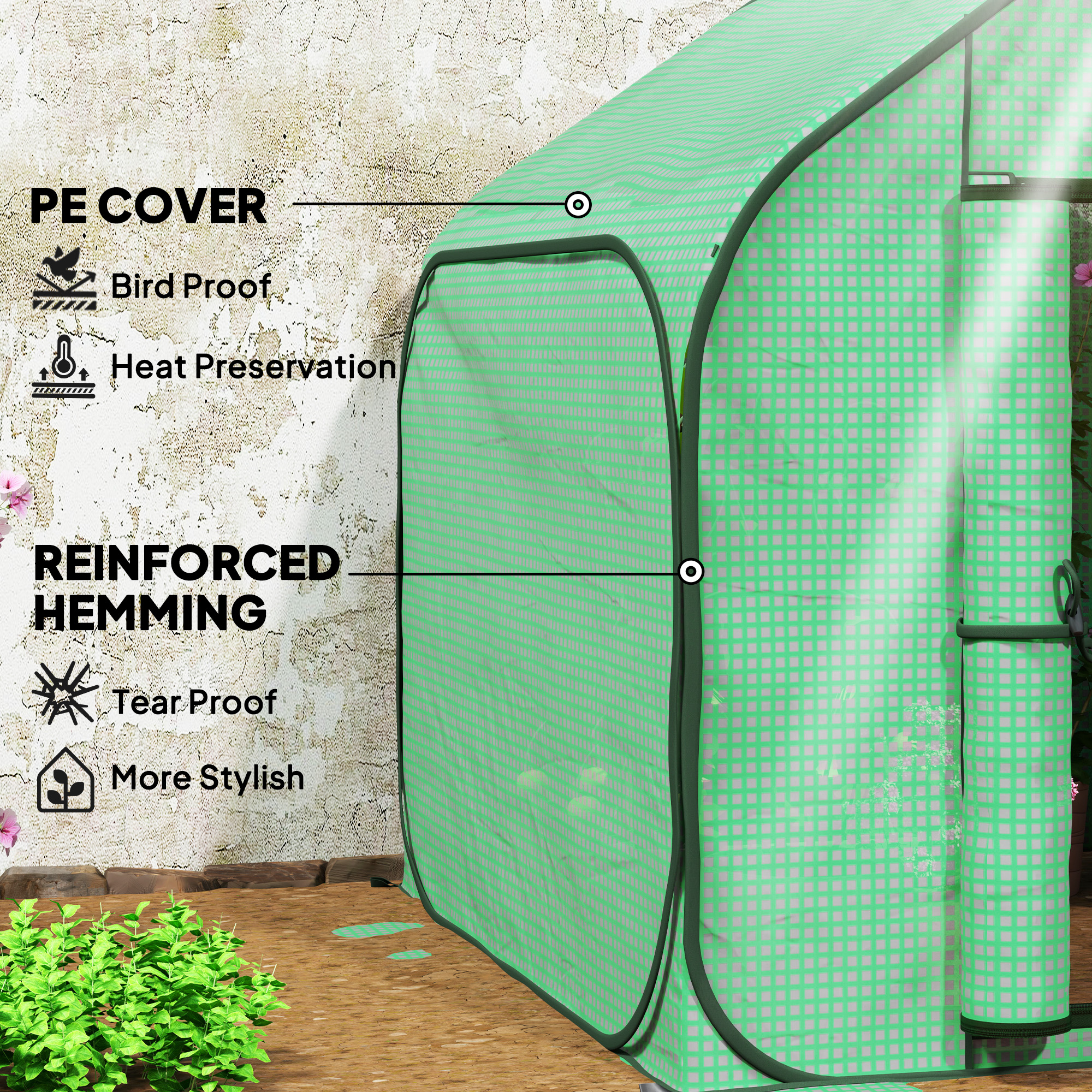 No matter the space, you can grow plants, flowers or small vegetables with this Outsunny pop-up greenhouse! A mini 150 x 148cm size, it is portable and foldable: bring out and store away easily, whenever. Fitted with a 140g/m² plastic cover, keeping inside shielded from rain and wind, whilst letting nourishing sunlight through - encouraging all the growth as possible. The growing possibilities are endless...
