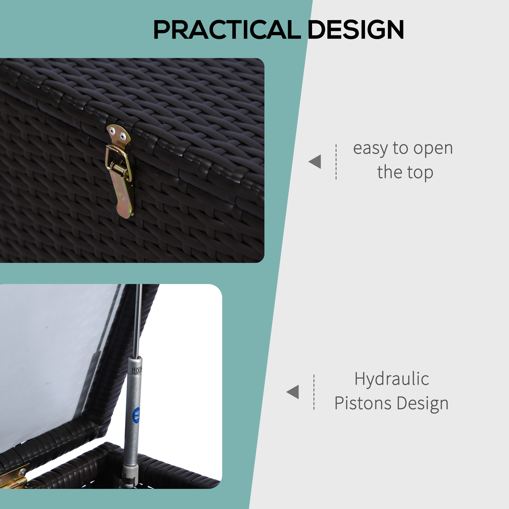 This Outsunny Rattan box is an ideal item to have in your garden or patio area. It is great place to store your cushions for your rattan furniture or to store anything which you need access to quickly. Made with a metal frame and covers with PE rattan, to match your existing outdoor furniture. The lightweight materials make it an effortless job to move it around if required. This is a great solution for all your storage needs, with the ability to match any decor.