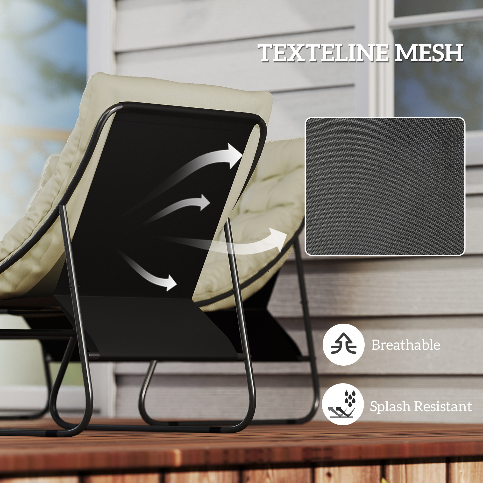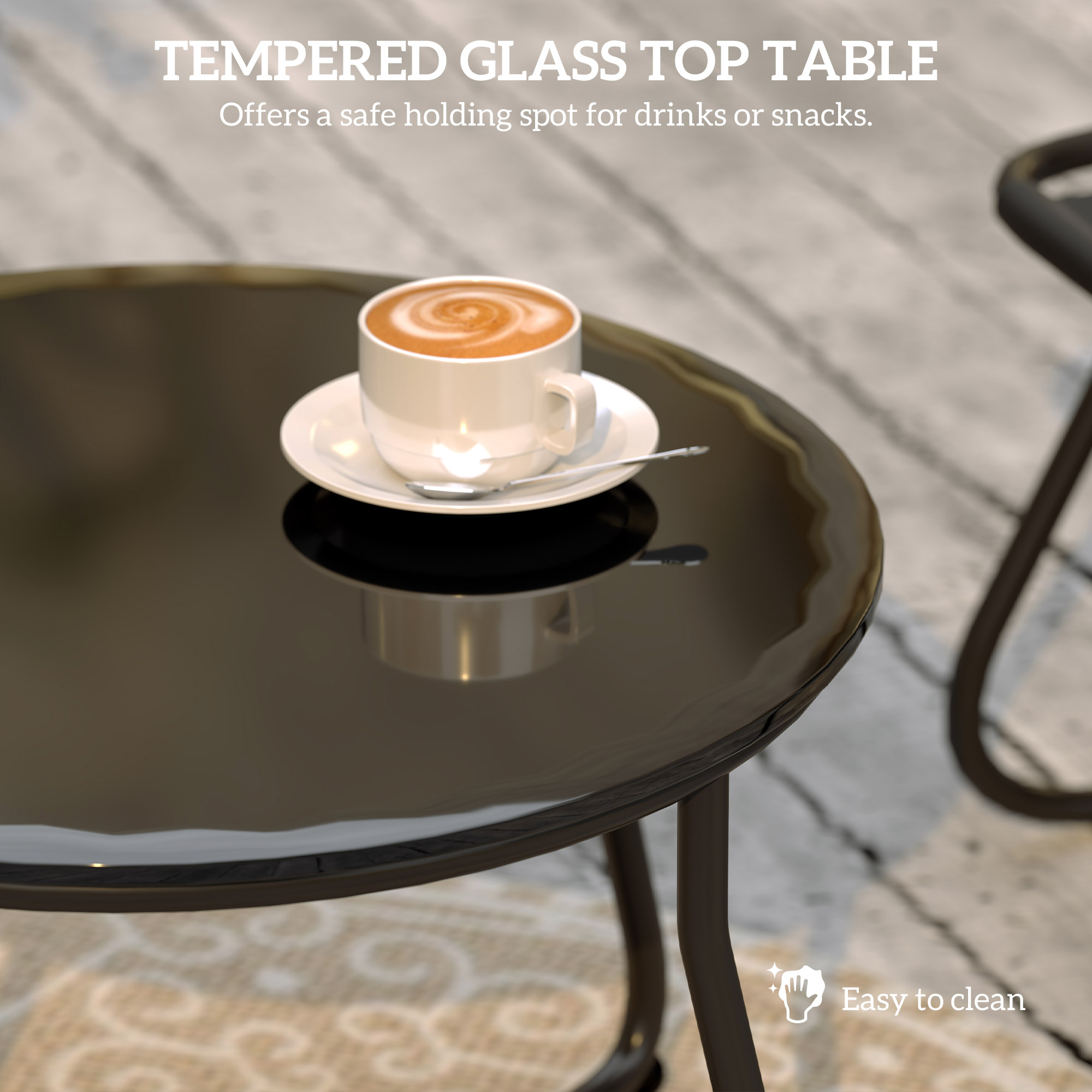 Sink into the soft curves of this Outsunny four-piece garden sofa set. Comes with two chairs, a two-seater sofa and a matching table. The powder coated steel frames offer strong support; the chairs are moulded into a smooth shape - paired with the padded seat cushions, you'll relax comfortably for hours on end. Set is complete with a small round glass-top table: a handy holding place.