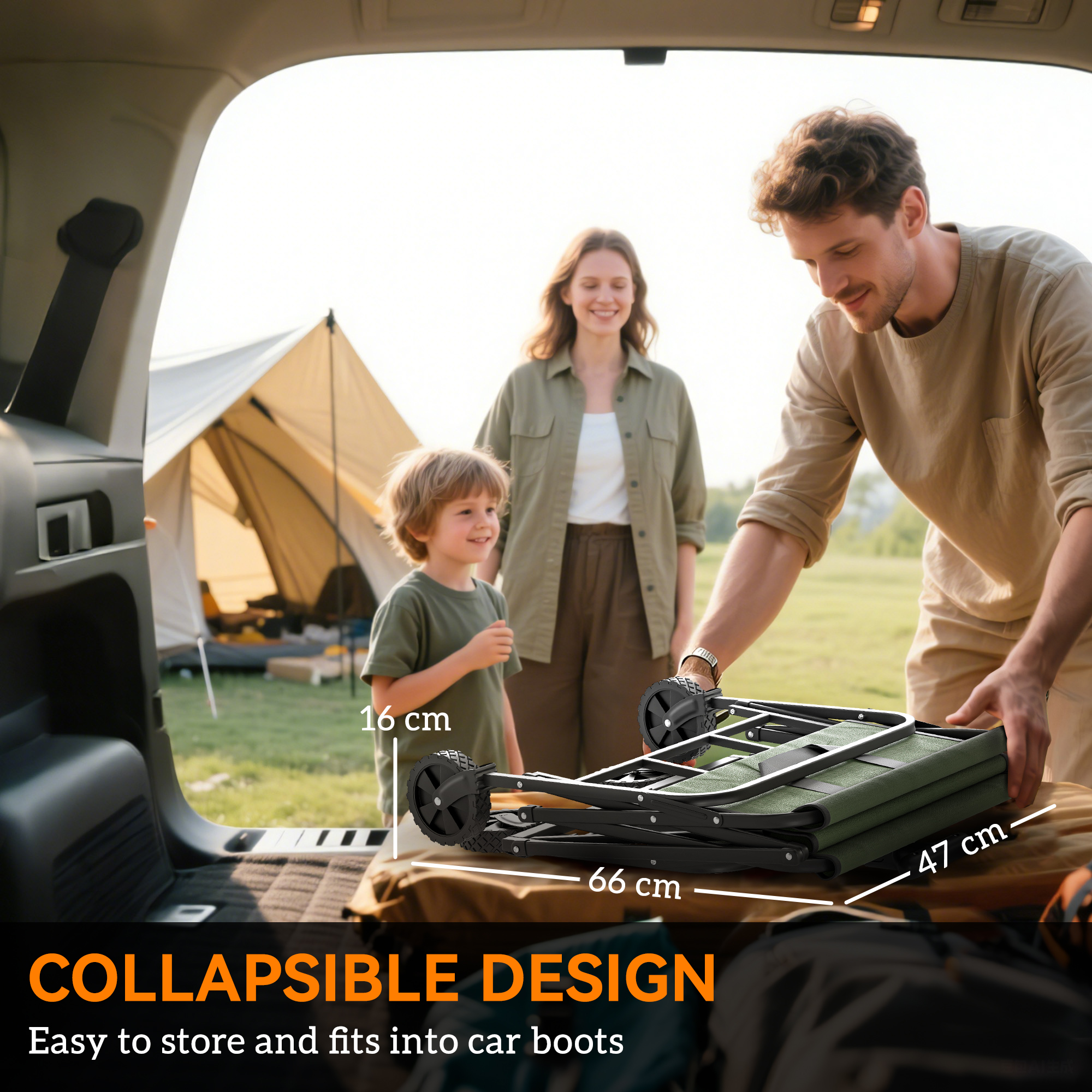 Outsunny 62L Festival Trolley on Wheels, Garden Folding Trolley Cart, 120kg Heavy Duty Collapsible Folding Wagon with Adjustable Handle and Carrying Bag for Beach, Camping, Festival, Green