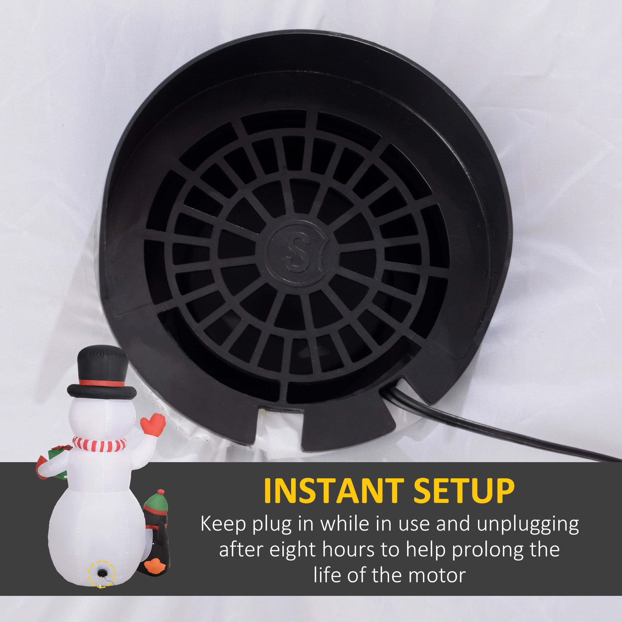 Christmas made extra fun? Yes please. Do it, this season and beyond, with this Outsunny outdoor inflatable snowman, holding a gift box with a penguin by their side. The polyester shell makes this a tough piece, which is also IP44 rated—it's suitable for use in mild rain outdoors. Inside there are three white lights and two rotating coloured lights—this blow-up christmas decoration glows and sparkles to bring the night alive, this season and beyond.