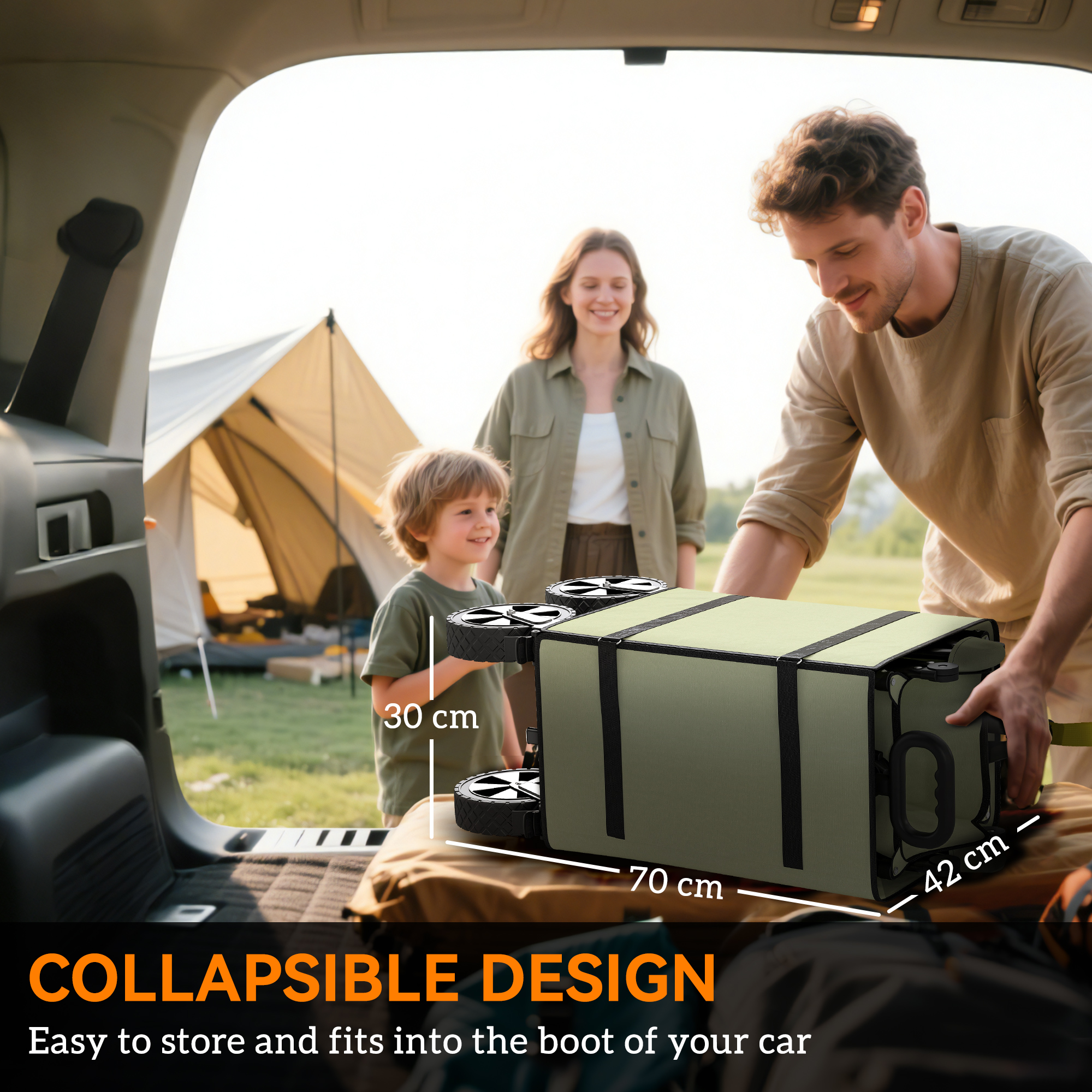 - Folded Dimensions: 70L x 42W x 30Hcm