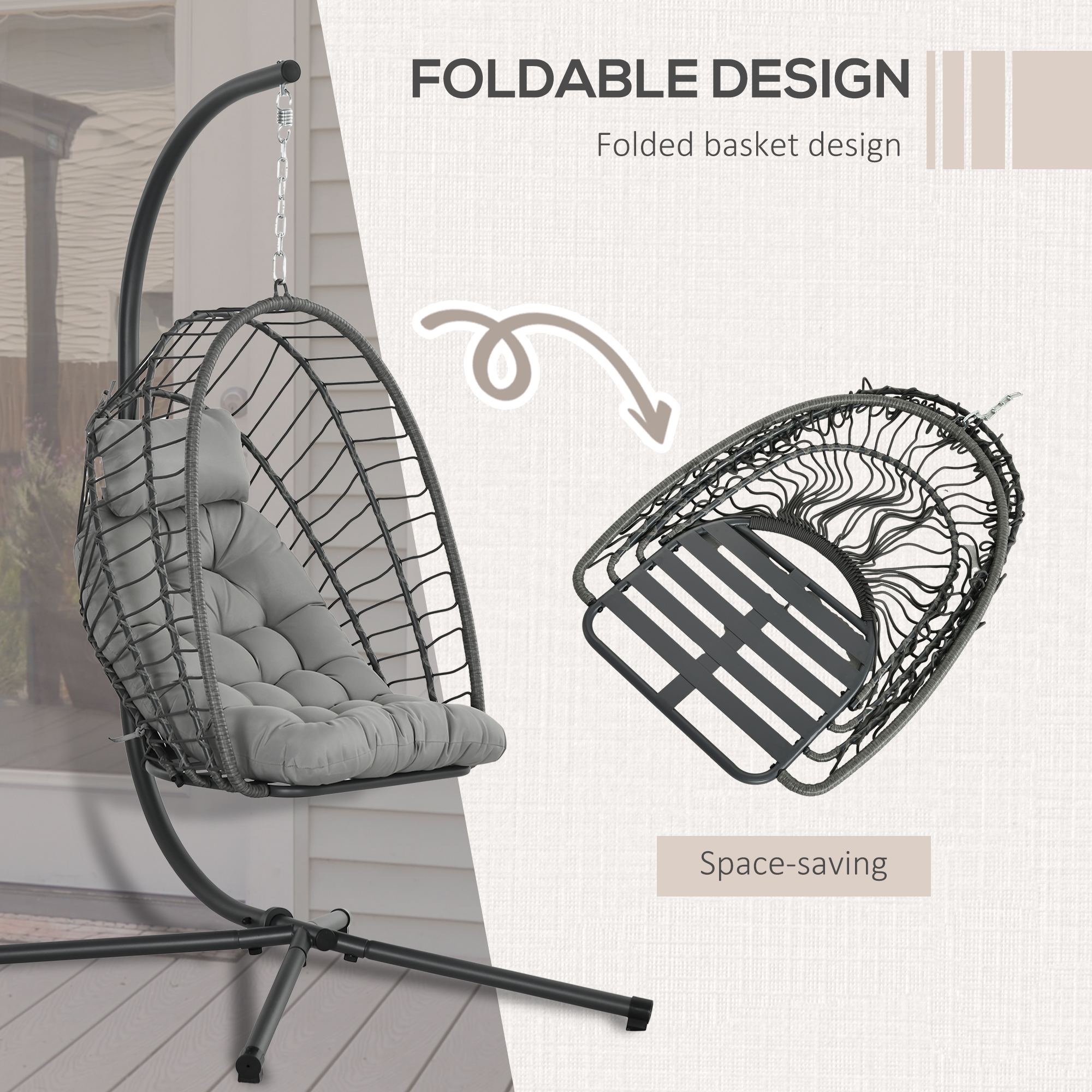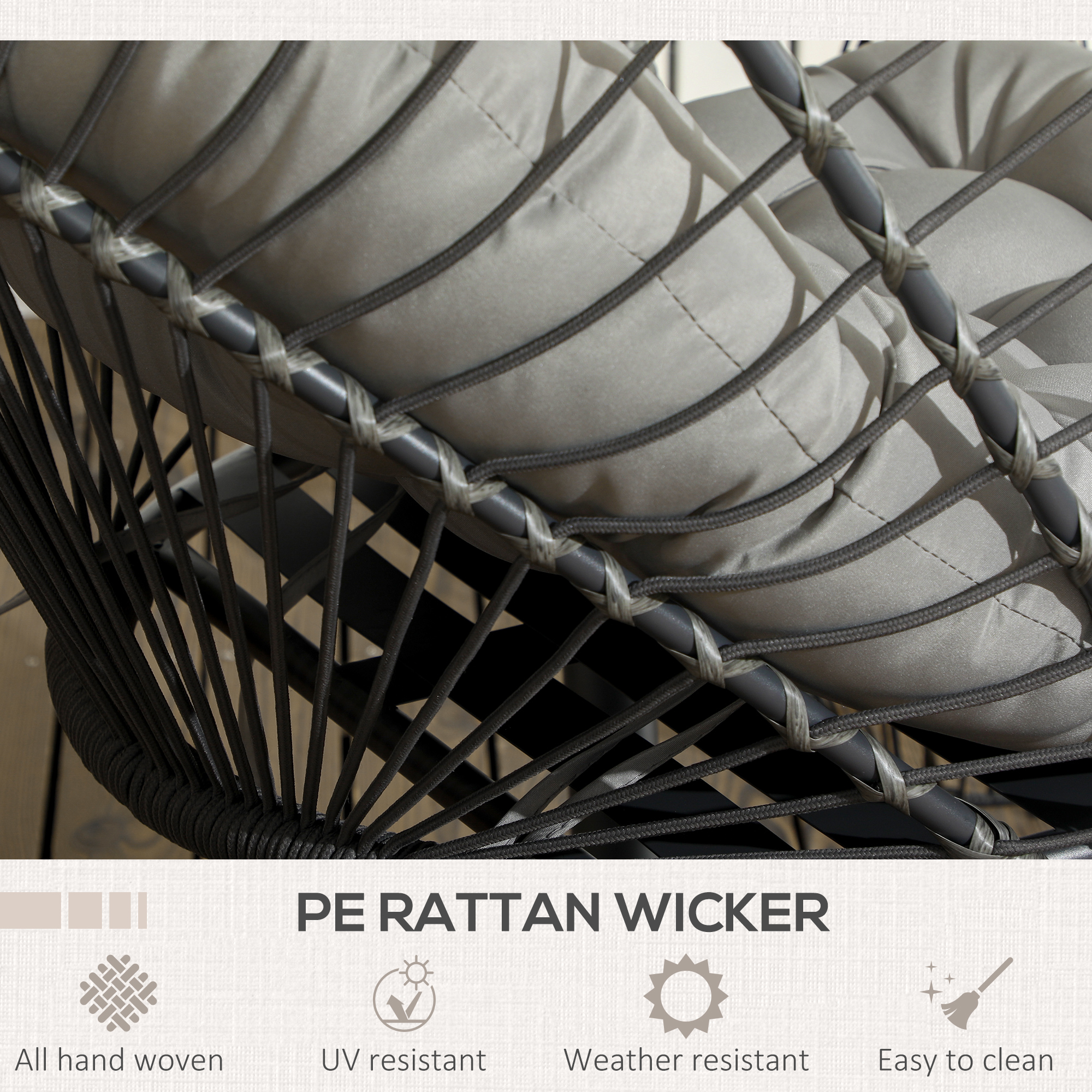 Relax comfortably with this Outsunny hanging egg chair. The powder coated steel frame offers strong support, with four legs for balance. A rattan egg basket, which comes with a large padded cushion for comfort.