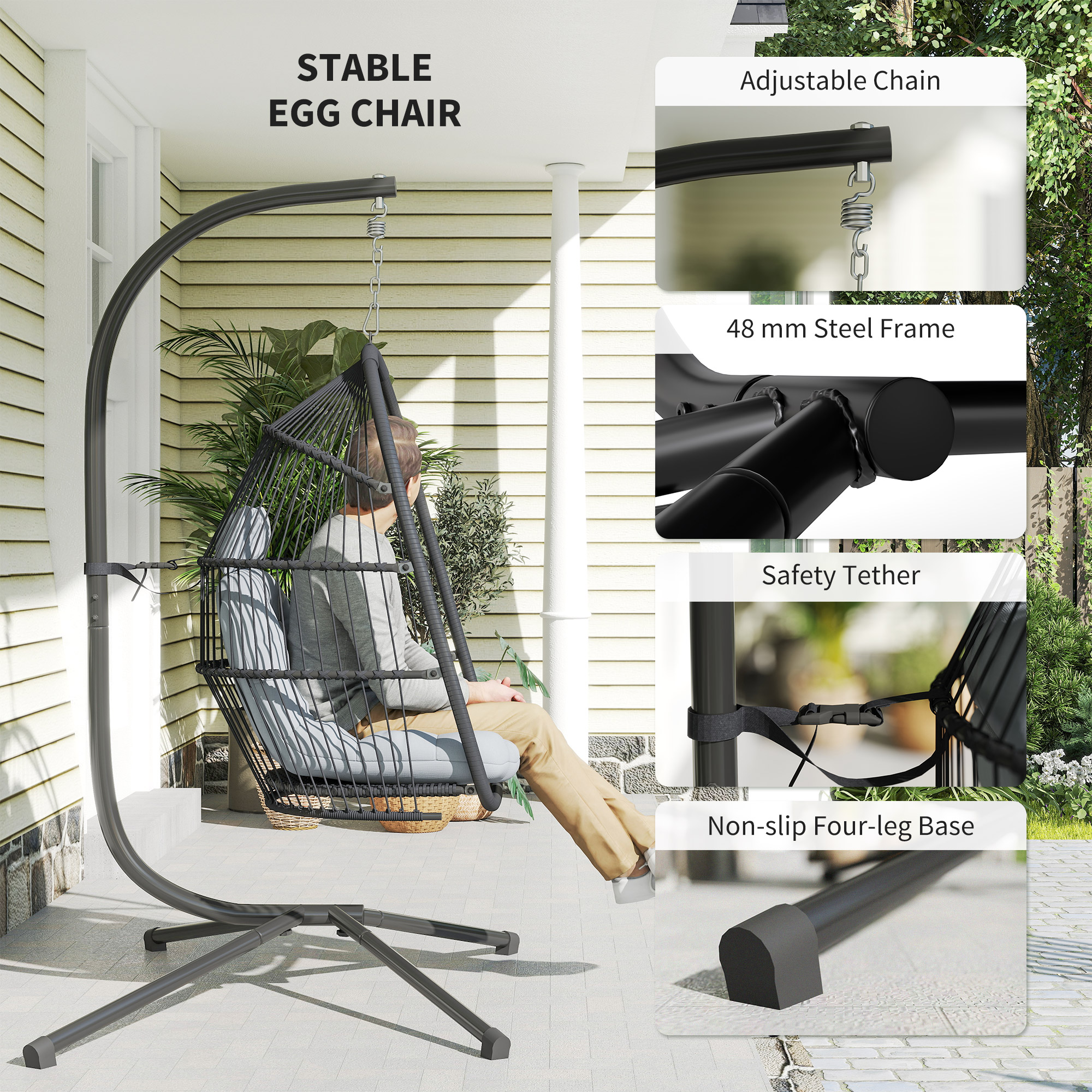 Discover the charm of the Outsunny Rattan Swing Chair, blending style and comfort. Its robust steel frame with chic rattan weaving withstands the elements, while the padded cushion and removable headrest contour to your body for relaxation. Great as an outdoor swing chair or a cosy indoor retreat, it easily adjusts in height and folds for space-saving storage.
