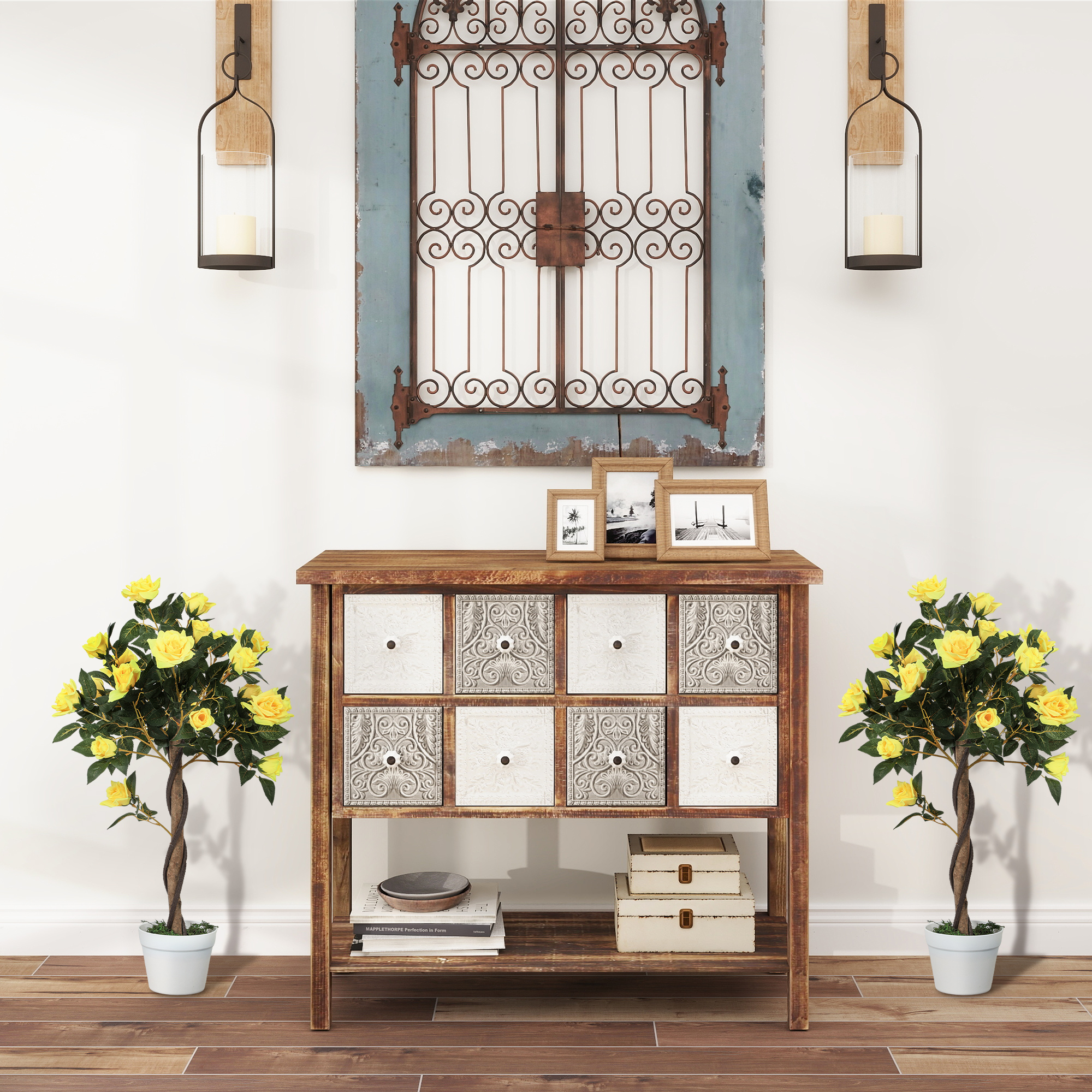 Outsunny Set of 2 Artificial Plants White Rose Floral in Pot, Fake Plants for Home Indoor Decor, 90cm, Yellow