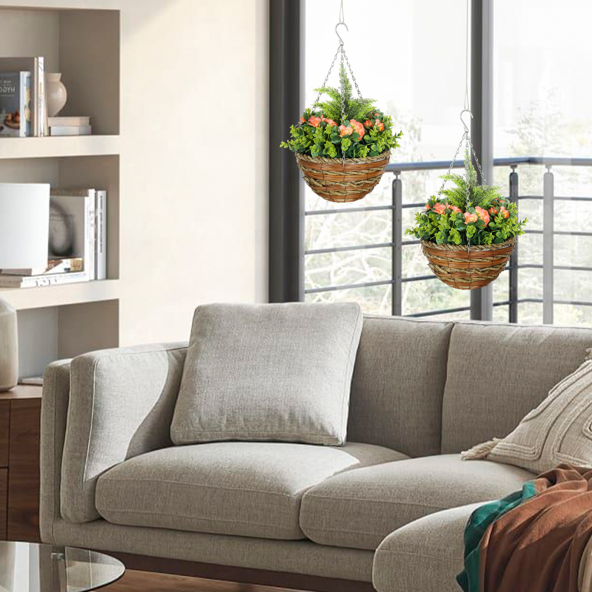 Dress up spaces in naturally colourful way, with no effort required-go for these Outsunny artificial lisianthus flower pots. The fake plants come in a set of two so you can create a matching look easily. Made from top quality plastic for long-term use and a realistic look and feel, each pot features 18 faux flowers and 72 leaves, giving it a beautiful voluptuous look. These plastic plants come with a wicker pot and metal hook and chain, so you have everything you need in the package.