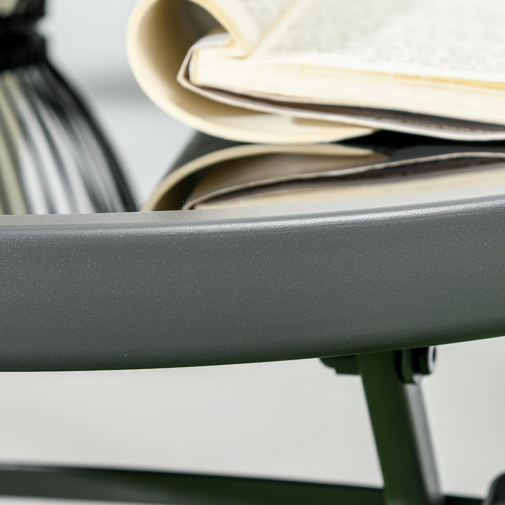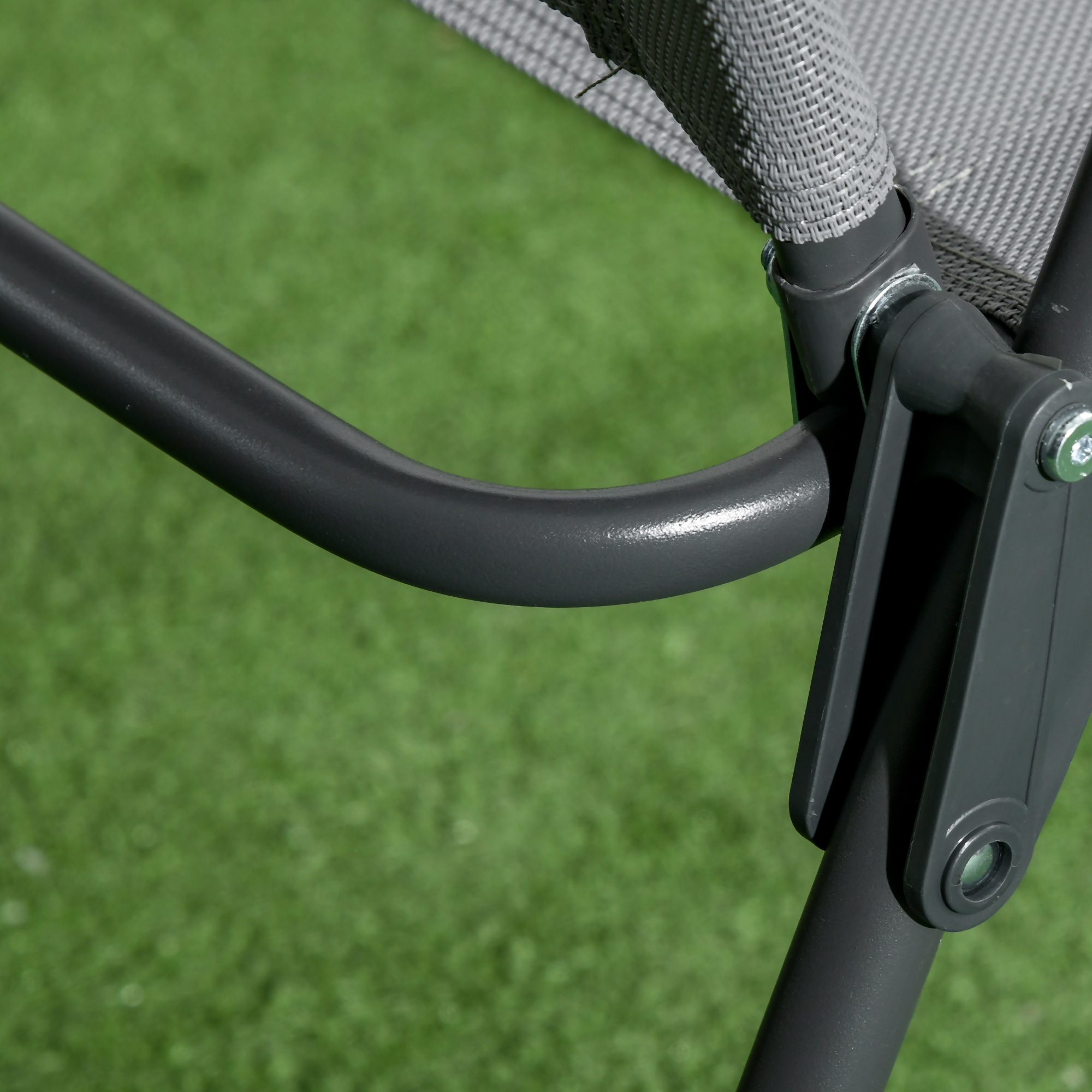 This Outsunny set comes with a round table and two matching chairs - enjoy time outdoors with company, practically anywhere. Powder coated metal frames mean strong cores to support you. Each piece is foldable - easy to carry and store away. The table is fitted with a tempered glass top - a sleek and safe finishing touch.