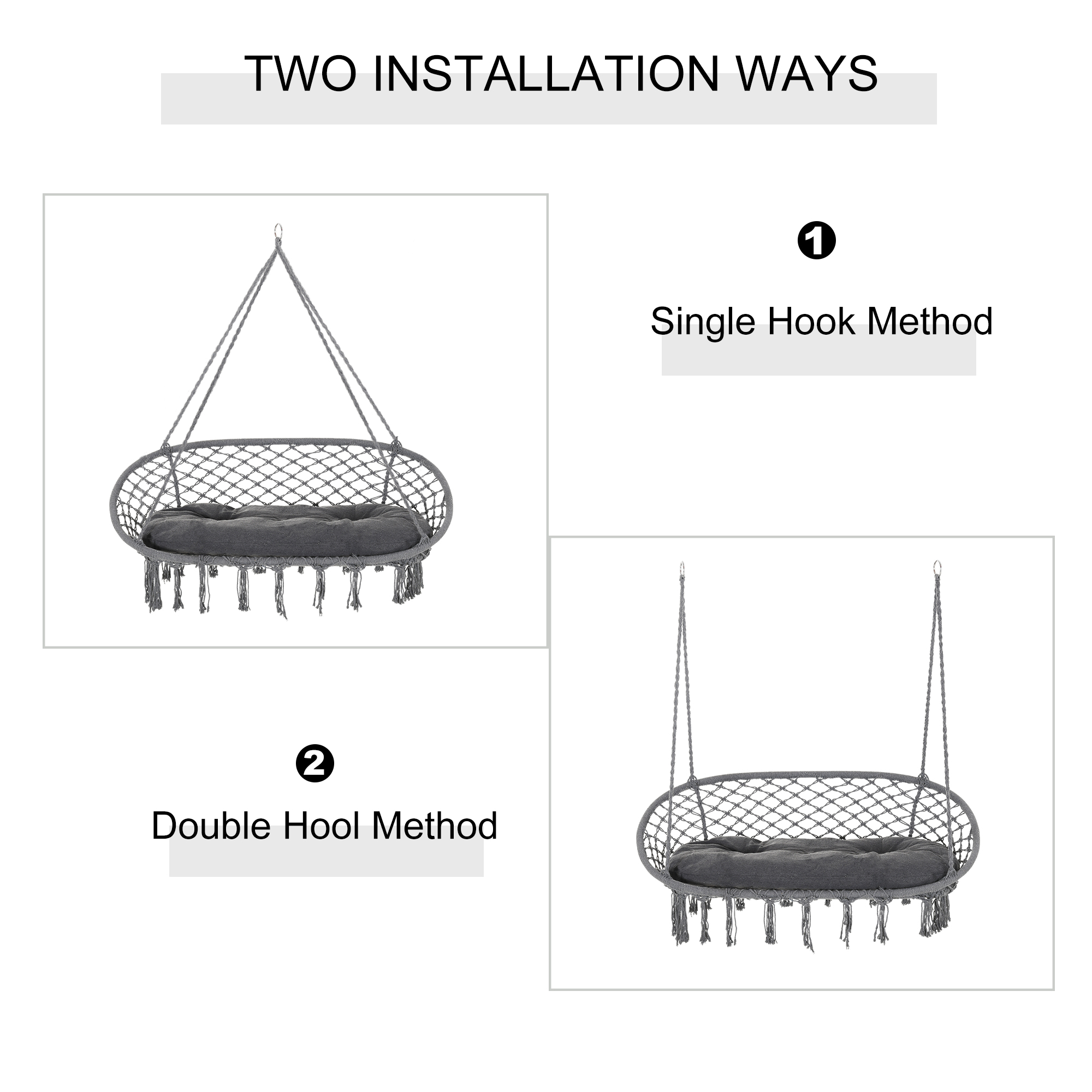 A seat to relax the day away in with company - wherever you choose to - this double-seat garden hammock chair from Outsunny. The boho style is pretty and elegant, showcasing fringe tassels wrapped in rope. The metal frame of the hanging seat is strong for support, and the curved back and armrests keep you supported. And the garden swing hammock comes with a spacious seat to keep you comfortable.