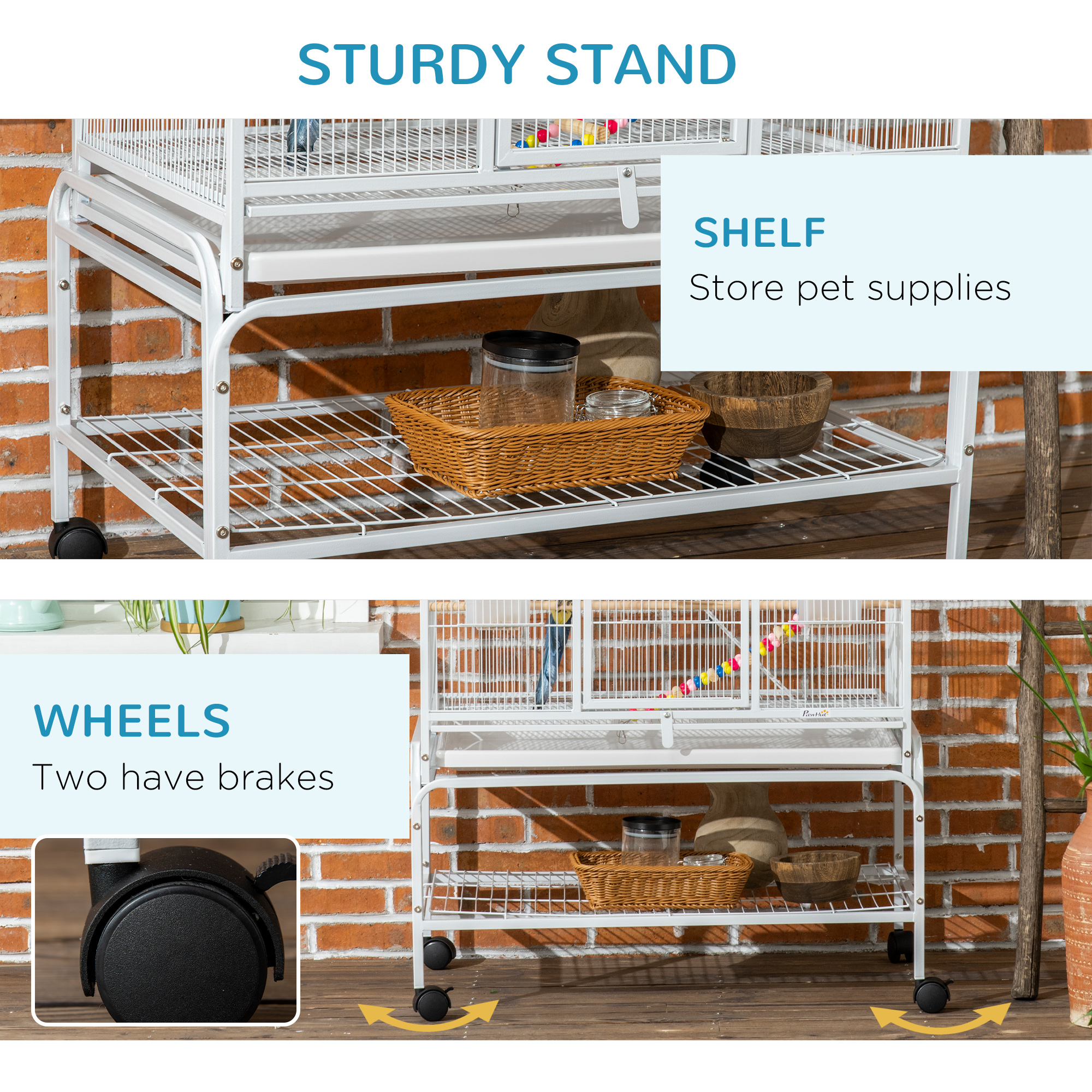 A spacious home for your birds, thanks to this parrot cage from PawHut. Its vertical design offers plenty of room to move and stretch their wings, whilst the four perches let them choose where they'd like to relax. The powder-coated metal grids help with ventilation. Perfect for outside, the asphalt roof is weather-resistant, whilst the raised floor stops moisture seeping through. The doors are lockable – they'll be safe in their new home, even when you're not around.