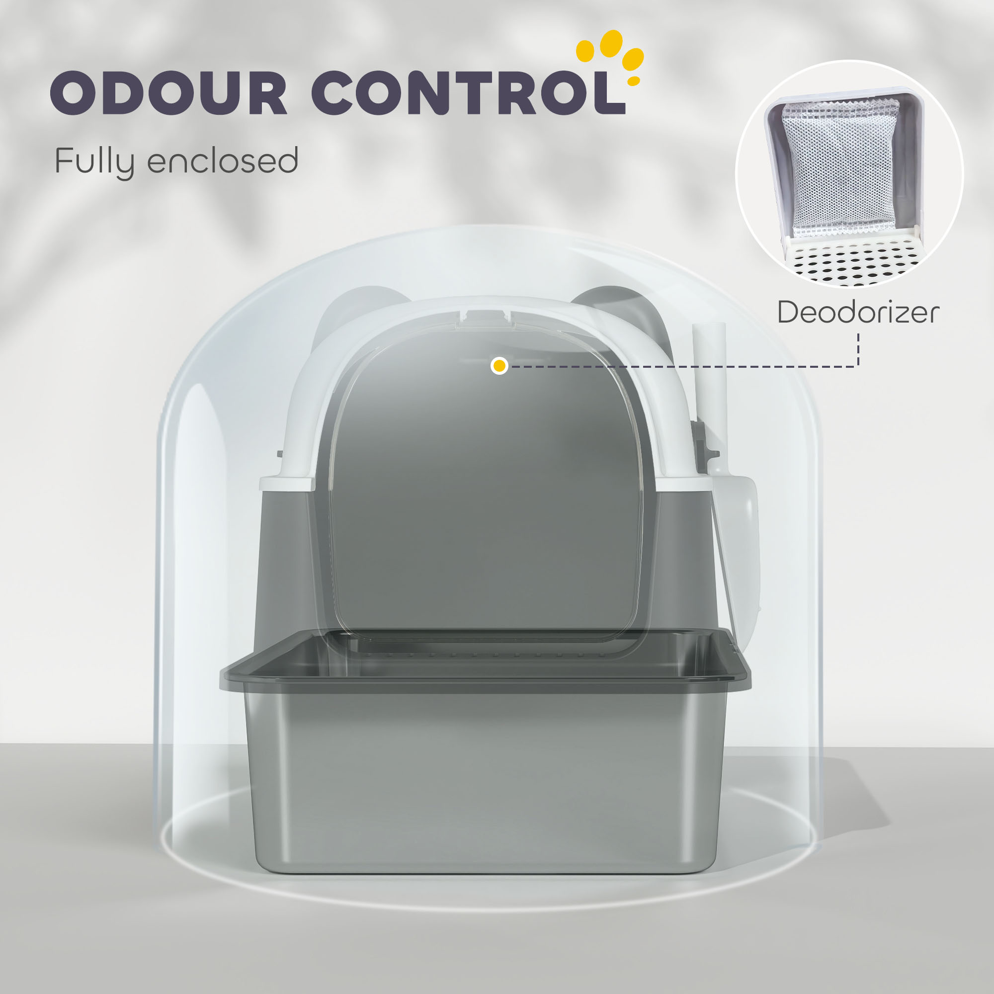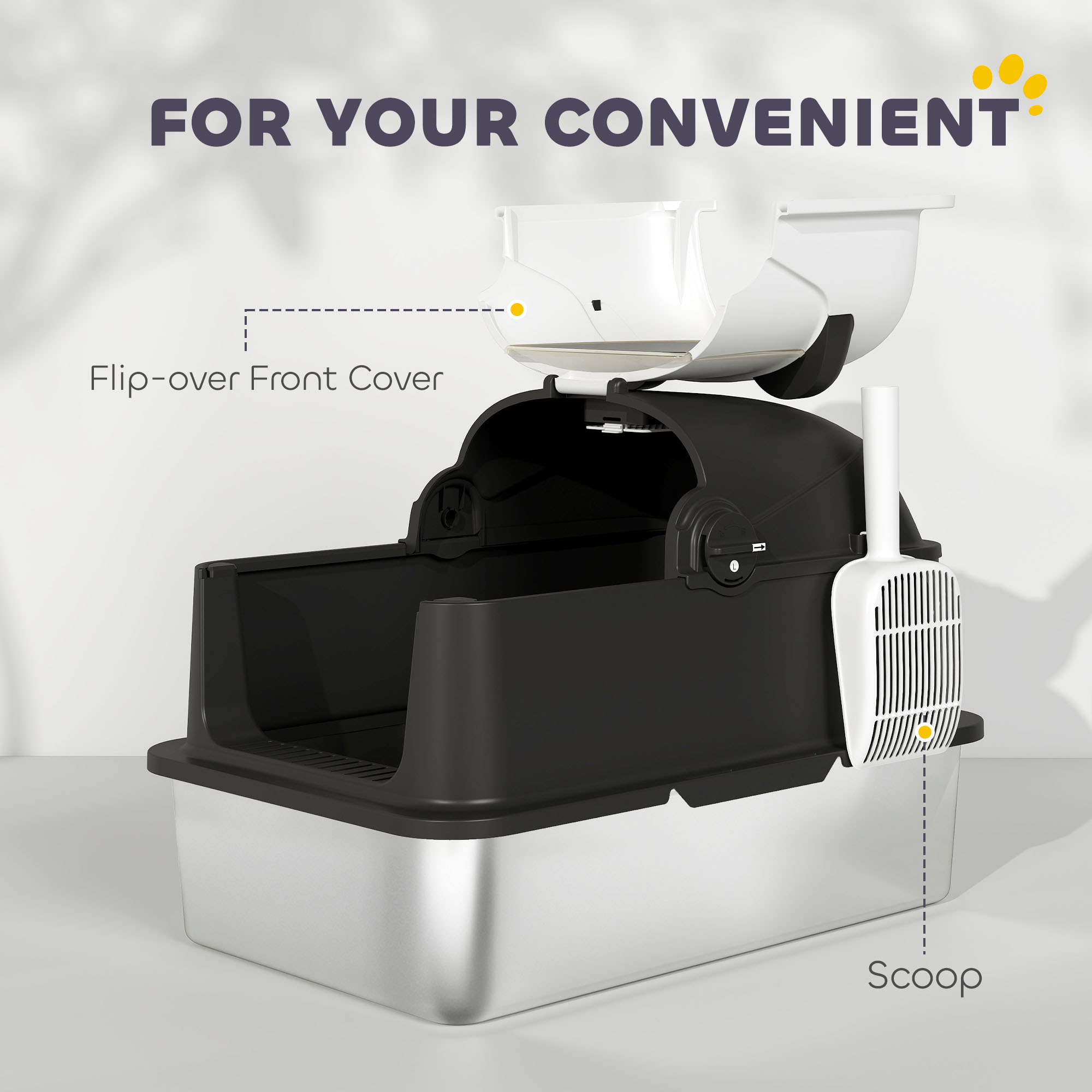 Experience the convenience of the PawHut stainless steel litter box, crafted with a hygienic stainless steel base that fights odours and stays fresh longer. Its tall walls and secure snap-lock lid work together to keep messes contained and the box firmly in place. Cleaning is a breeze thanks to the smart sand drop zone and handy mat that catch stray litter before it spreads. Spacious and comfortable, it's a great private retreat for your larger feline companions to feel right at home.