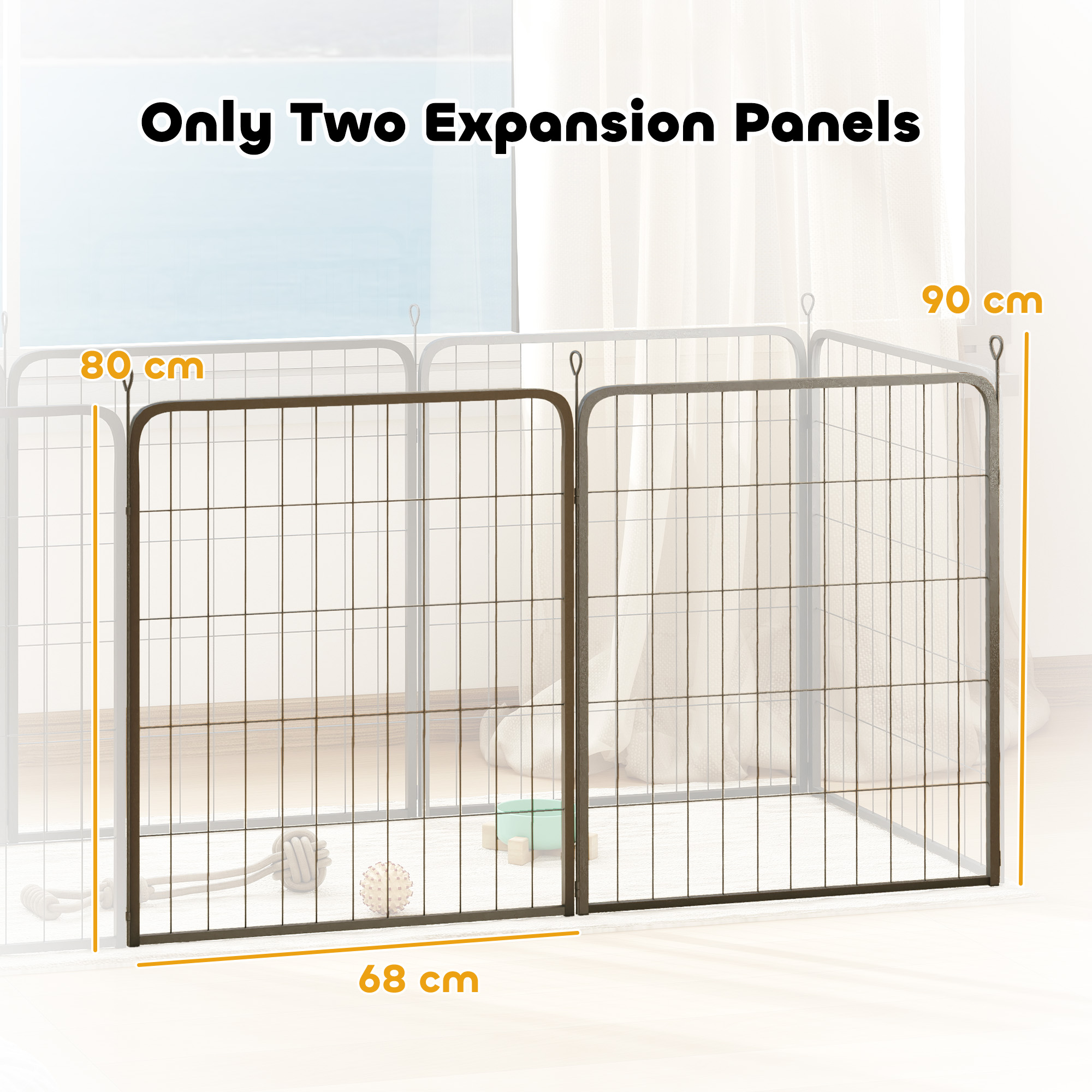 Add this two-piece PawHut expansion pack to your existing pet playpen, increasing their space for more roaming, playing and relaxing. It's made of solid steel, anchored with three ground stakes, providing a stable and secure setup that keeps small dogs safe, indoors or outdoors. When not in use, simply fold it flat for compact storage, ready to be used again.