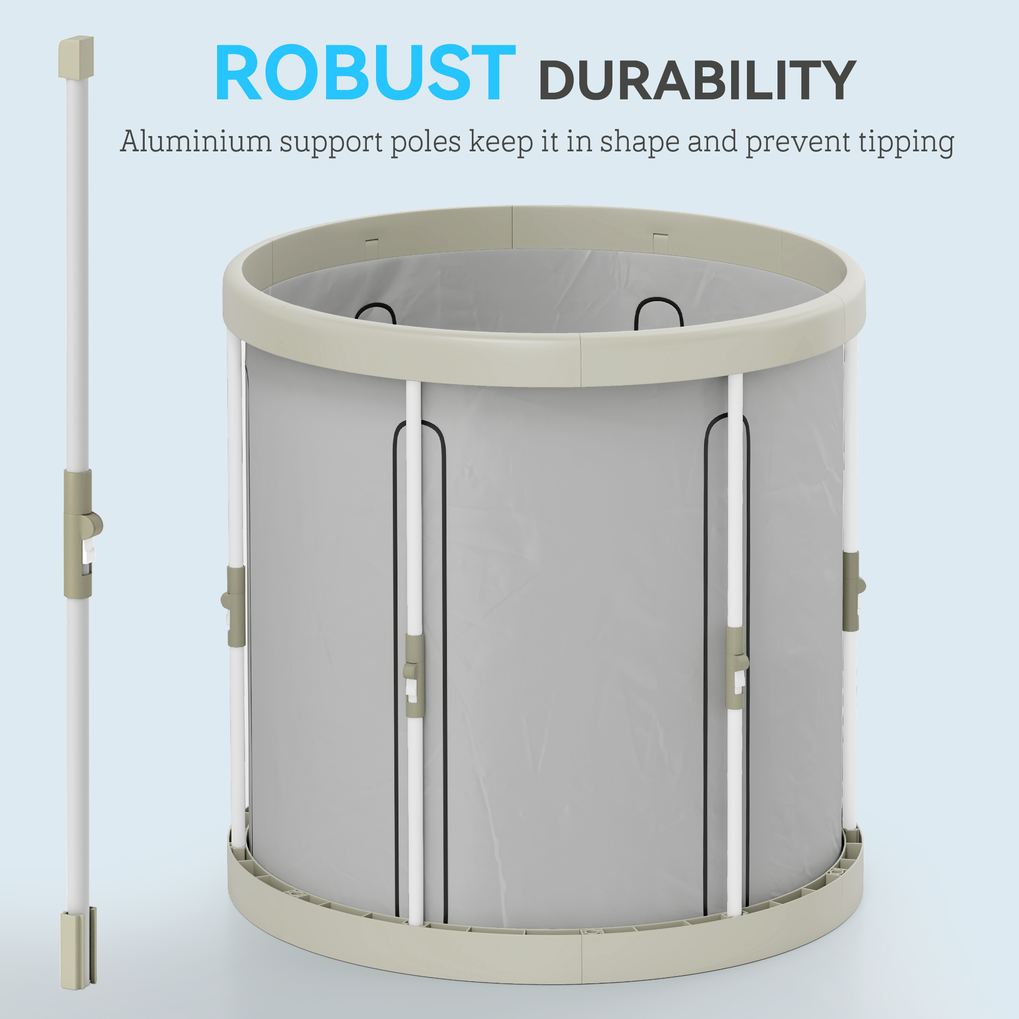 - Solid aluminium poles enhance stability, preventing spills
