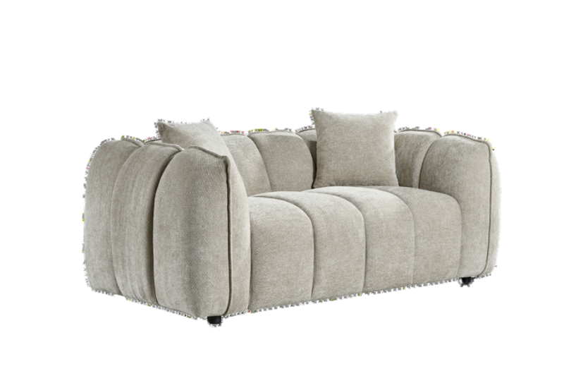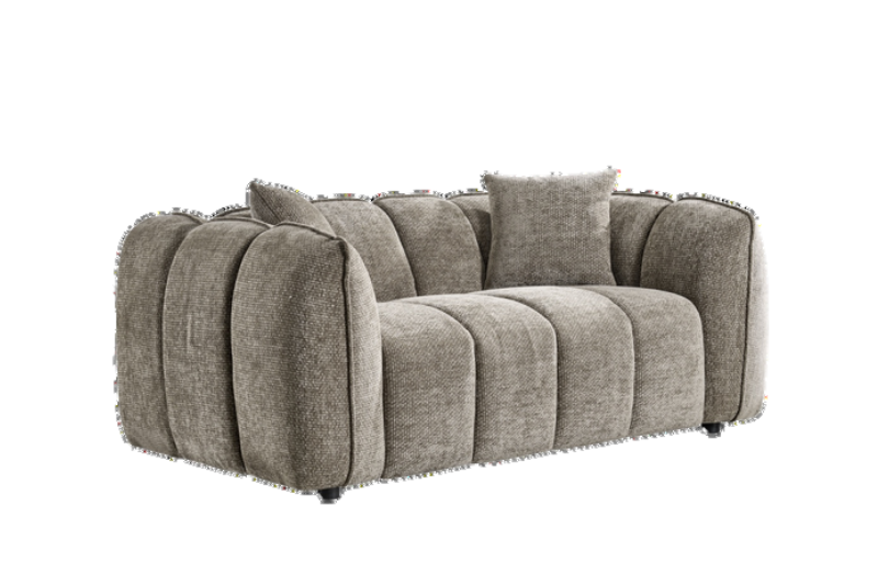 Designed with a distinctive channeltufted profile and sumptuously soft upholstery, it brings a contemporary touch to any living space. Generously cushioned with deep seating and matching throw pillows, this sofa is perfect for lounging and relaxation.